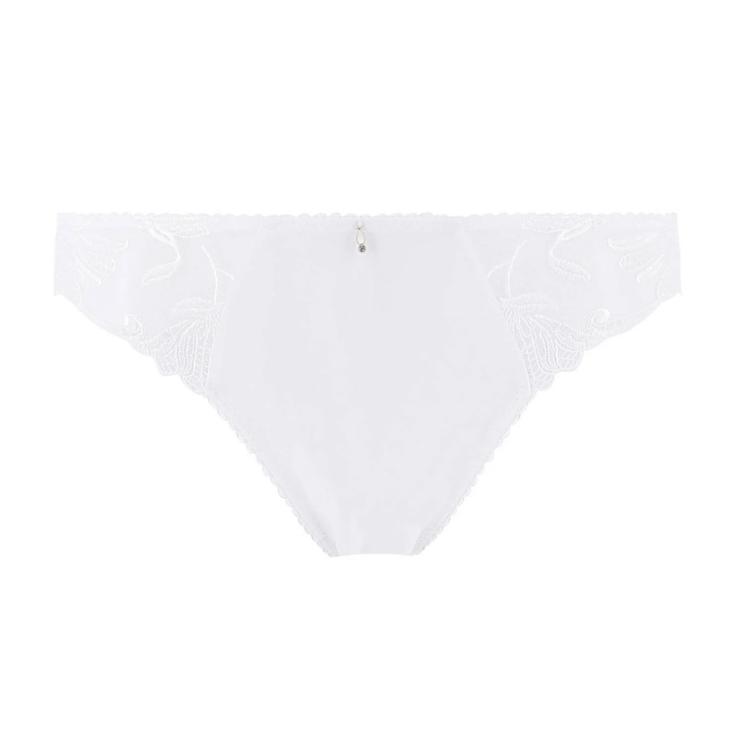 Ce slip Brésilien de la ligne Lovessence présente un bijou en Zamac doré à la taille ainsi qu’un noeud pompon fabriqué à la main derrière. Une coupe classique légèrement échancrée. A l’arrière les bords francs offrent une application sans démarcations sous les pantalons.