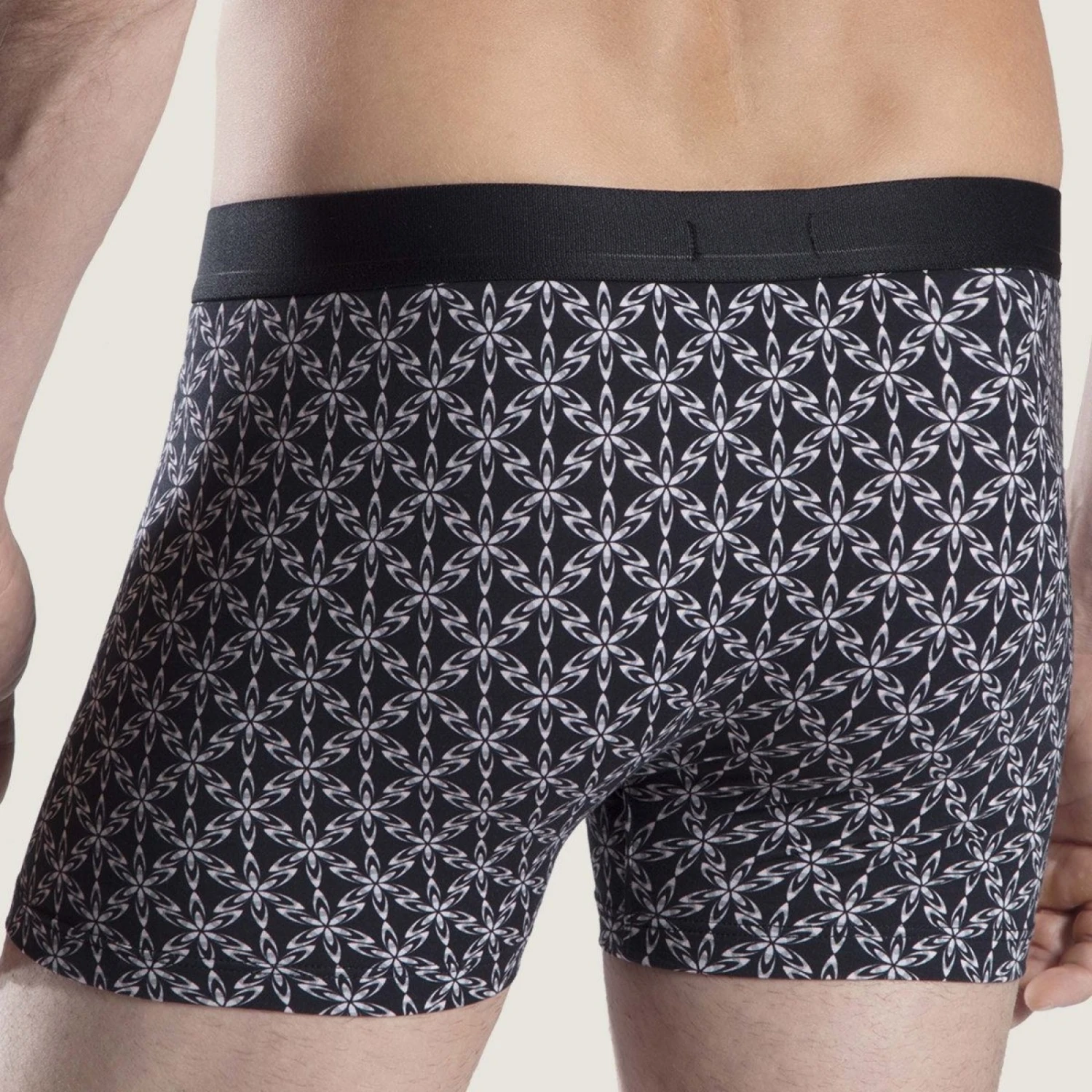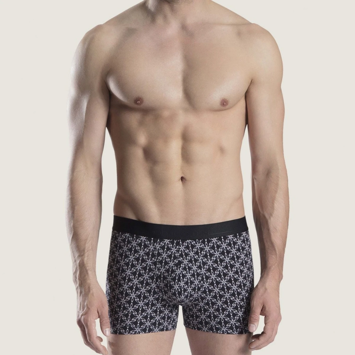 ce duo de boxer séduit par son look fin et élégant. Un modèle gris chiné accompagne un second très chic, à l’imprimé poétique qui rappelle les dentelles de la collection féminine. Les tons pastels créent une harmonie masculin-féminin d’une infinie séduction.