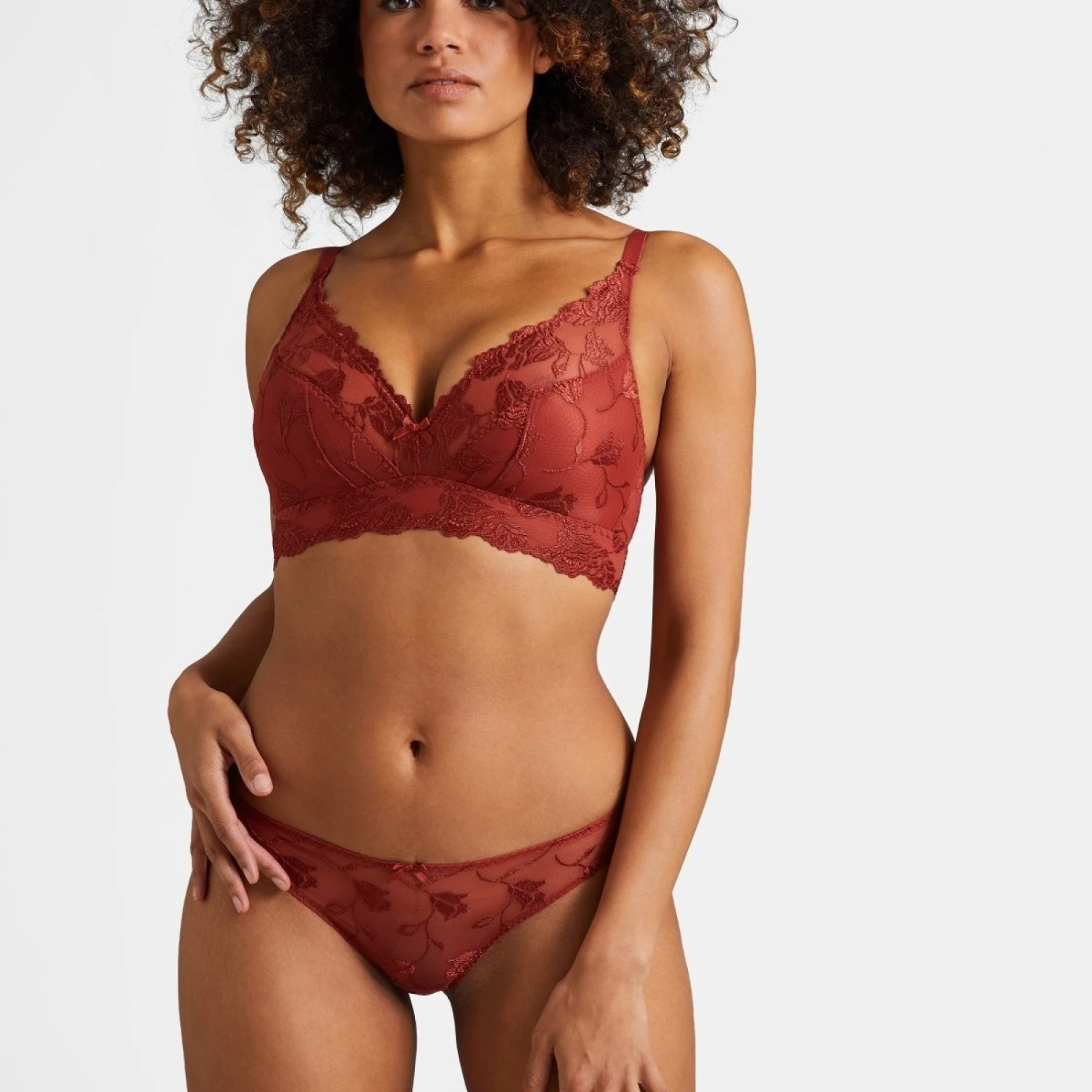 Invisible sous les vêtements, même les plus étroits. Très échancré au niveau des fesses, ce tanga dévoile entièrement les courbes pour un rendu très sexy. Petit nœud satiné à l’avant. Colori Terracotta très mode et chaleureux.