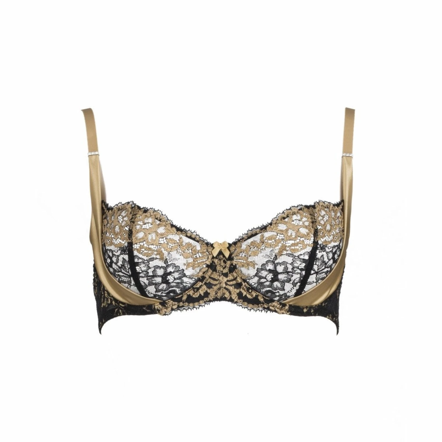 Cette saison, Aubade souffle une poudre d’or sur ses dessous. Le Tulle Noir brodé contraste avec le satin or sexy, la dentelle dorée affirme son allure couture. Pour que le mot parure prenne tout son sens ce Soutien Gorge est à associer absolument avec le Tanga, le Slip Italien ou la Culotte Saint Tropez dans la même collection Femme Glamour.