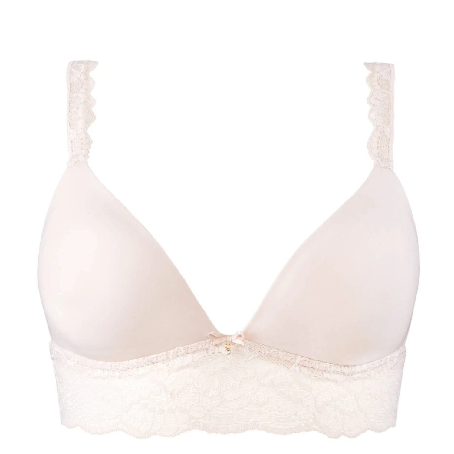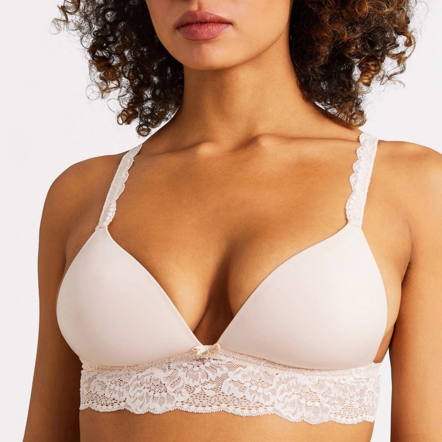 Soutien-gorge triangle sans armatures AUBADE Sweetessence en maille douce et en somptueuse dentelle florale. Résolument raffinée, cette ligne durable composée de fibres recyclées apporte un vent de fraicheur dans notre lingerie quotidienne. Dotés de coques en mousse, les bonnets de forme triangle assurent un galbe naturel pour une poitrine très séduisante. De magnifiques empiècements de dentelle mêlant fils mats et brillants se déposent délicatement sur la basque et les bretelles. Un petit nœud satiné orné d’un bijou illumine l’entre-bonnets avec charme. L’élastique en tour de dos procure une meilleure tenue ainsi qu’un bien-aller absolu. Bretelles extensibles et réglables.