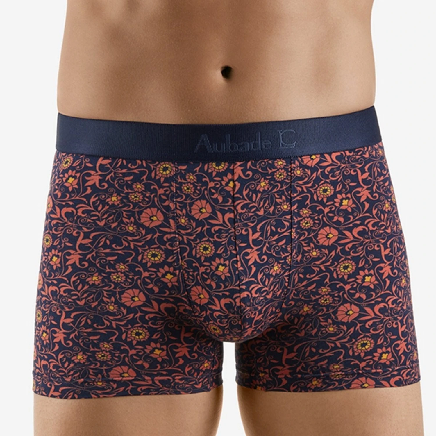 Le Boxer Aubade x Camille Lacourt Bohème est un imprimé florale sur un fond bleu marine.