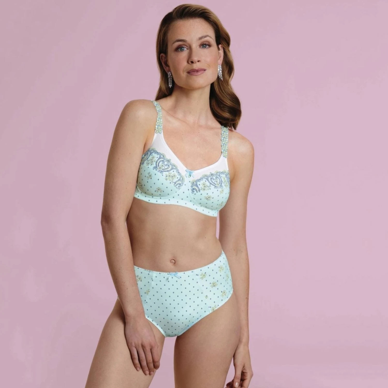 La Culotte Taille haute Anita Care Belvédère en coloris Princess blue un imprimé floral frais avec une petite boucle à l’avant.