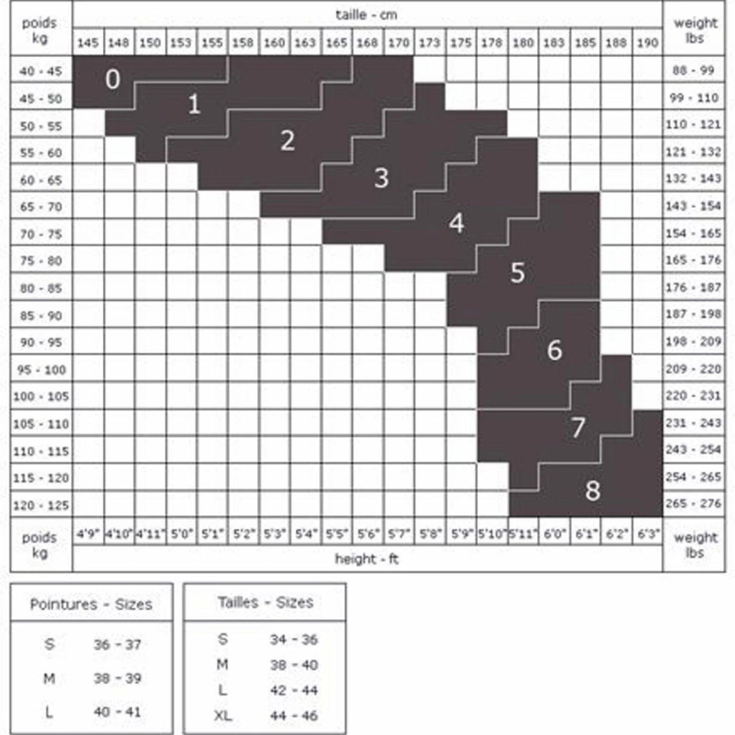 N’oubliez pas de vérifier votre taille sur le tableau présenté en image.