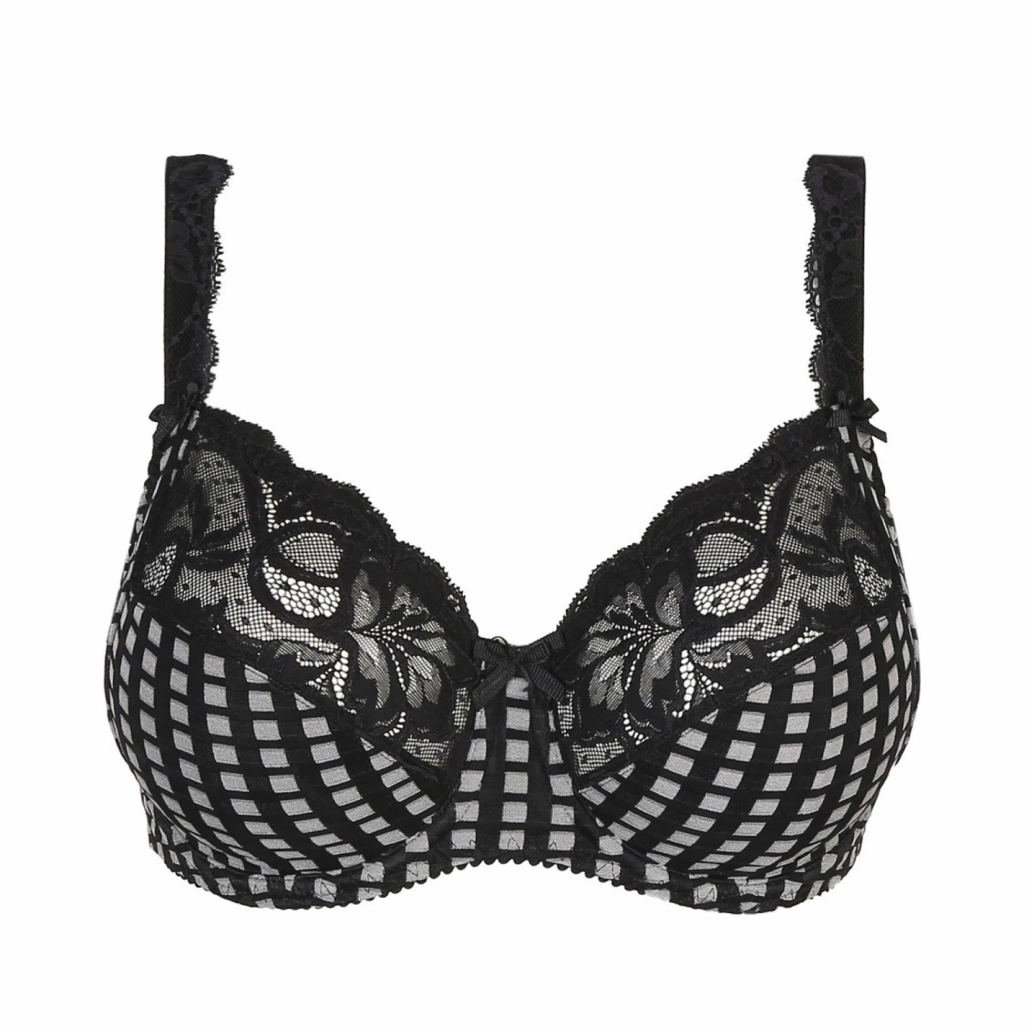 Le soutien-gorge à armatures Madison est orné de carreaux frais et de dentelle sensuelle au niveau du décolleté et de la bretelle.