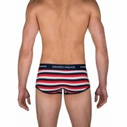 Le Shorty fermé est une forme de lingerie pour Hommes tendance et sexy. La qualité du tissu vous assure un maintien irréprochable et la ceinture ergonomique garantit votre confort. Avec des rayures roses pales bleues foncées, ceinture élastiquée et siglée, surpiqûres de renfort apparentes.et toujours le petit nœud rose brodé sur la cuisse gauche…