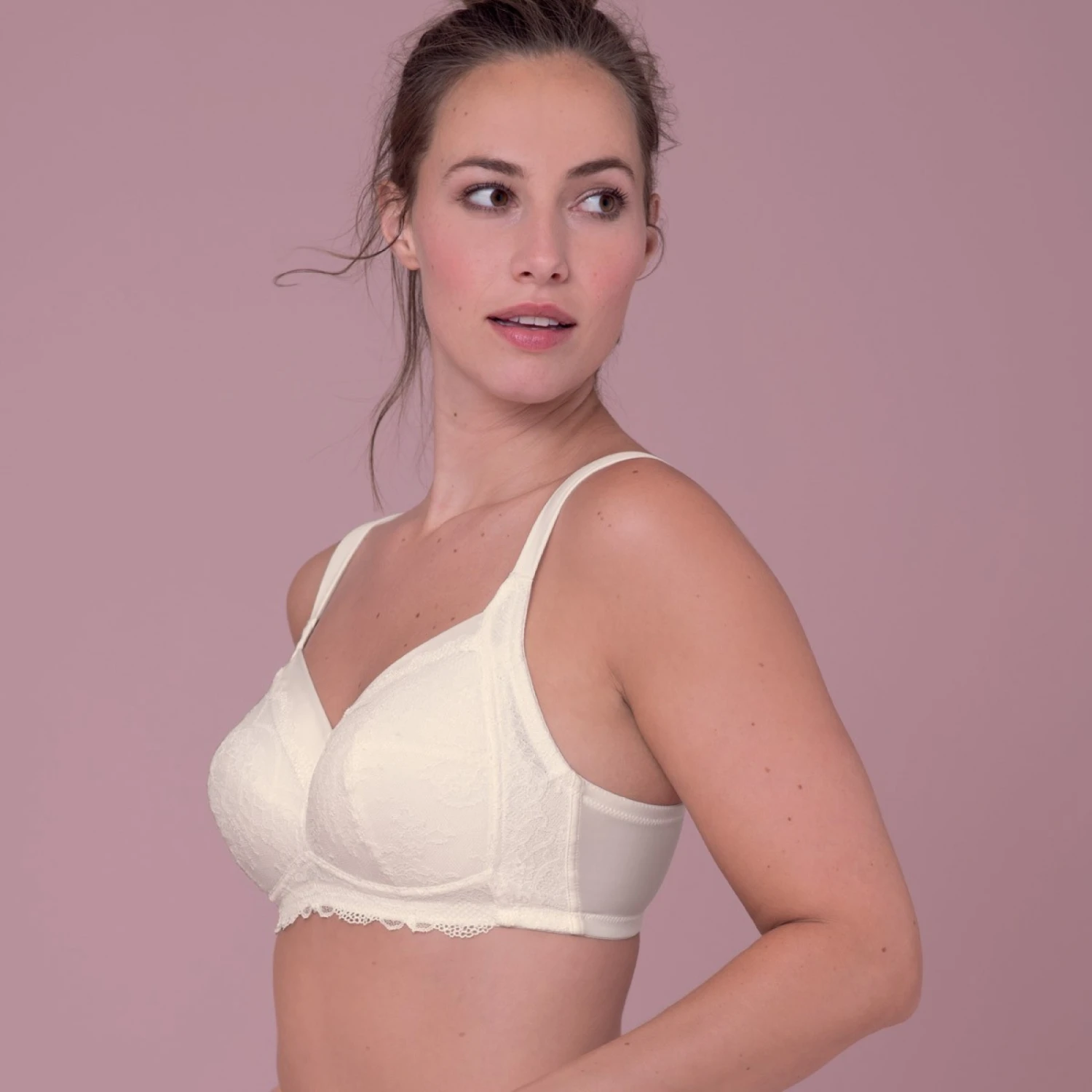 Look en dentelle romantique avec des détails confort : le Soutien-gorge post-opératoire Dalia arbore une dentelle filigrane recouvrant un molleton respirant qui dissimule parfaitement la prothèse mammaire.