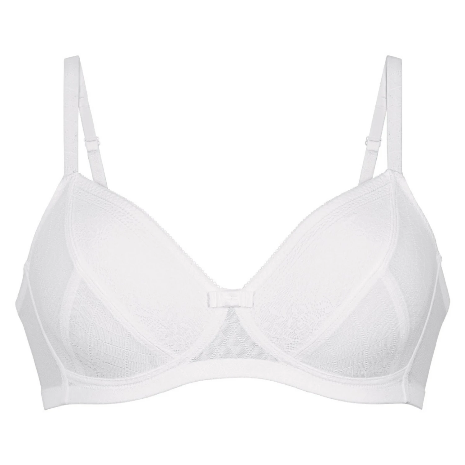 Soutien-gorge sans armatures romantique en forme de triangle à dentelle plate avec des motifs floraux combinés à un all-over graphique à carreaux.